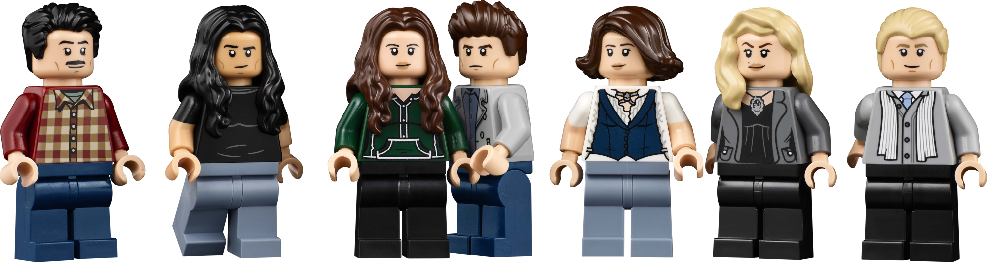 The set includes seven minifigures, including Bella Swan, Edward Cullen, and Jacob Black, as well as other beloved characters from the film. The Cullen estate is complete with a grand piano and planters on the balcony.